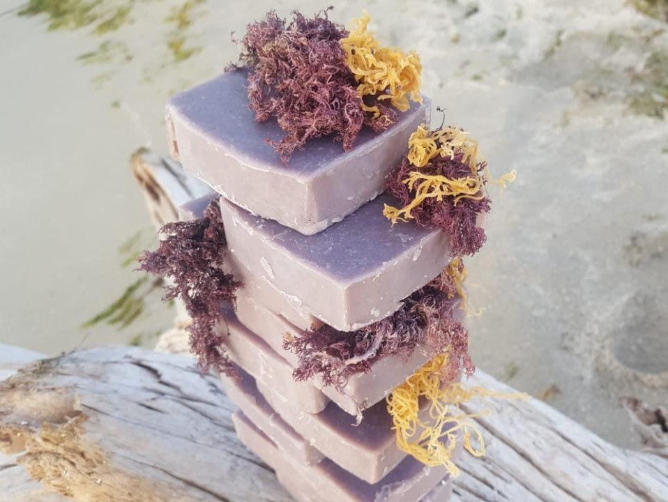 Our Purple Sea Moss Soap is a moisture-rich handmade vegan soap, made with wild-crafted purple sea moss and gold irish moss harvested off the coast of Jamaica.